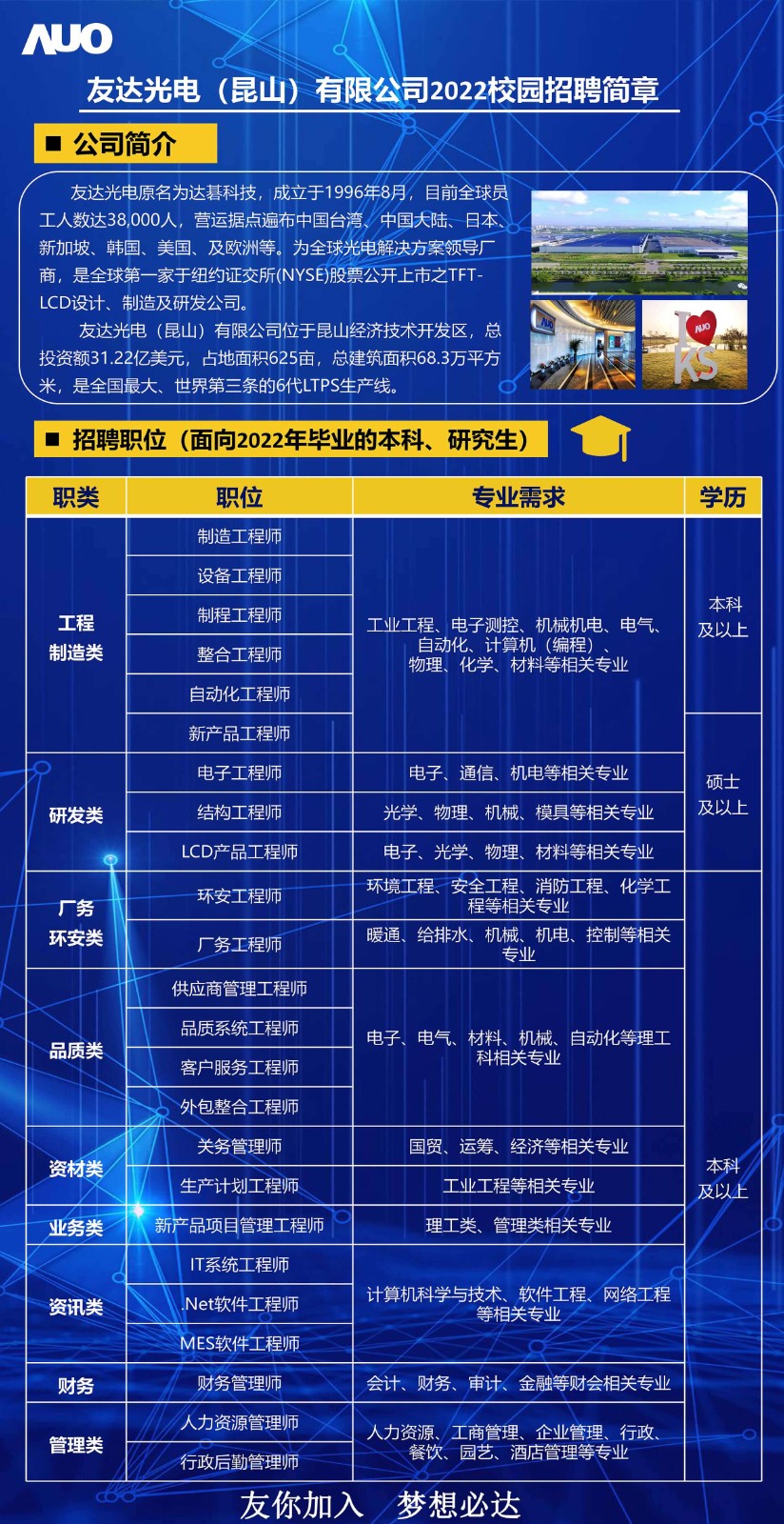 昆山友達(dá)光電最新招聘,職業(yè)發(fā)展的理想選擇