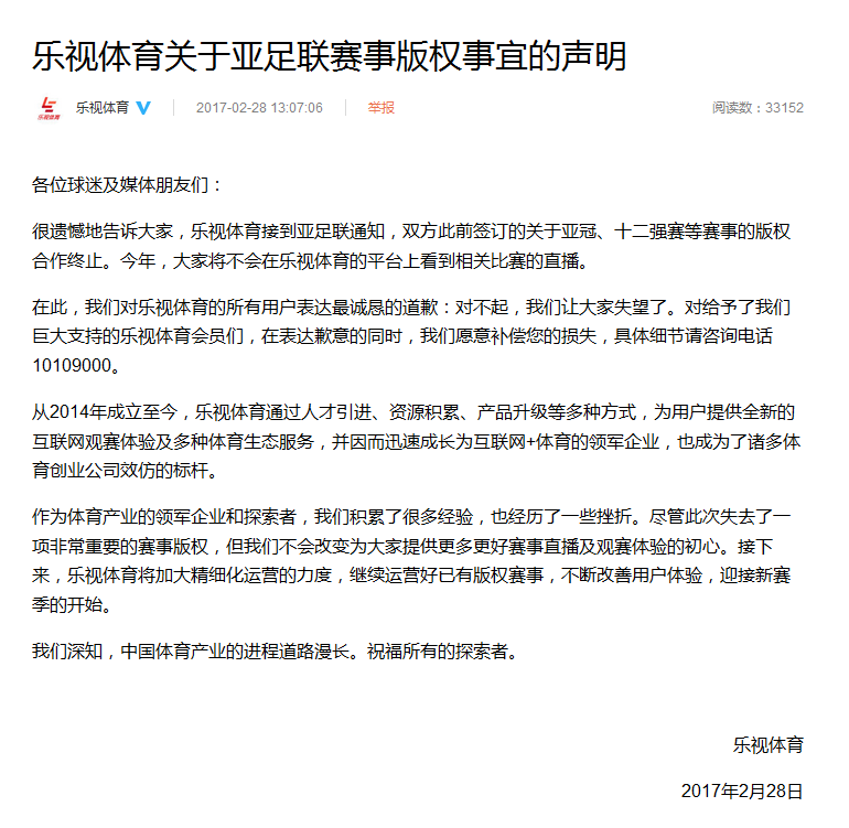 轉(zhuǎn)載請注明來自福建省鑫越群貿(mào)易有限公司,本文標題:《樂視體育最新動態(tài),發(fā)展態(tài)勢及各方觀點聚焦》