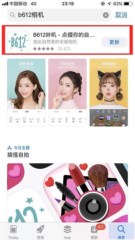 2、搜索B612:在搜索框中輸入“B612”,從搜索結果中選擇B612應用。