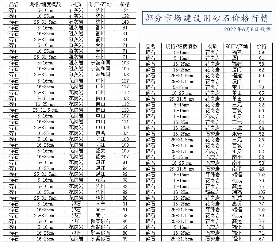 建筑砂石規(guī)格及價(jià)格指南