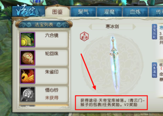 1、通過任務獎勵獲得法寶:玩家小張通過完成主線任務成功獲得新法寶“蒼穹神鏡”。