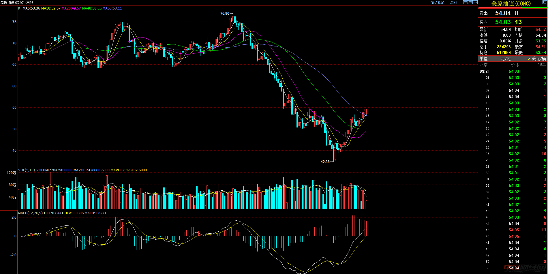3、進(jìn)行技術(shù)分析,查看歷史走勢(shì)圖,預(yù)測(cè)未來油價(jià)走勢(shì)。